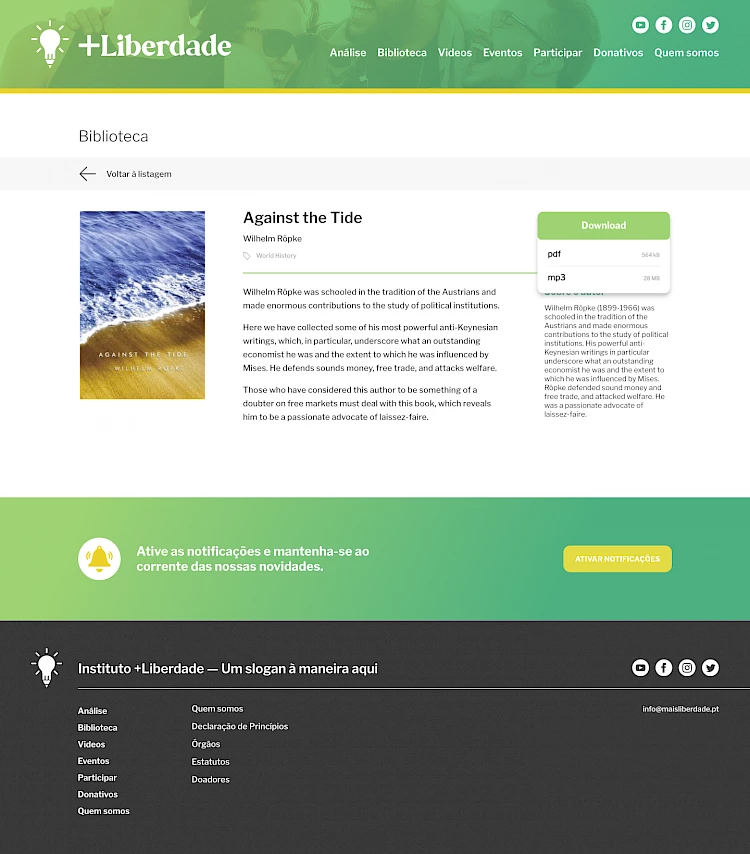 +Liberdade is the portuguese liberal thinktank, whose mission is to promote knowledge for a society based on individual freedom, political freedom, and free market economy.
