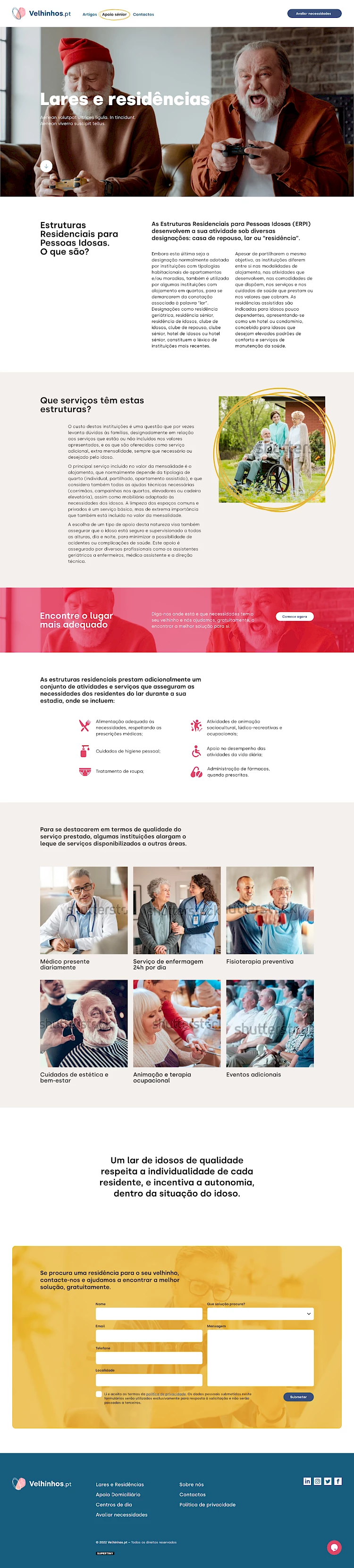 The custom built needs evaluator form is the main source of leads for Velhinhos. With an underlying score system that assigns points to each response, this form calculates the level of dependency.